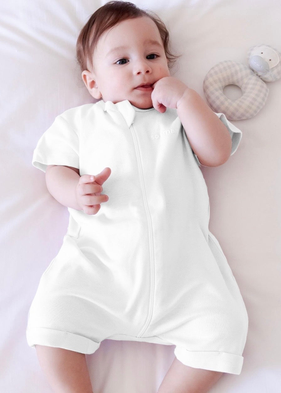 Introducing our Milky White Half-Sleeved Zipper Romper! Crafted from our luxurious 100% organic Egyptian cotton. Featuring convenient zipper closure, this romper is perfect for playtime or a day out! With its half-sleeved design, your little one will stay cool and comfortable all day long during the sweltering summer days.