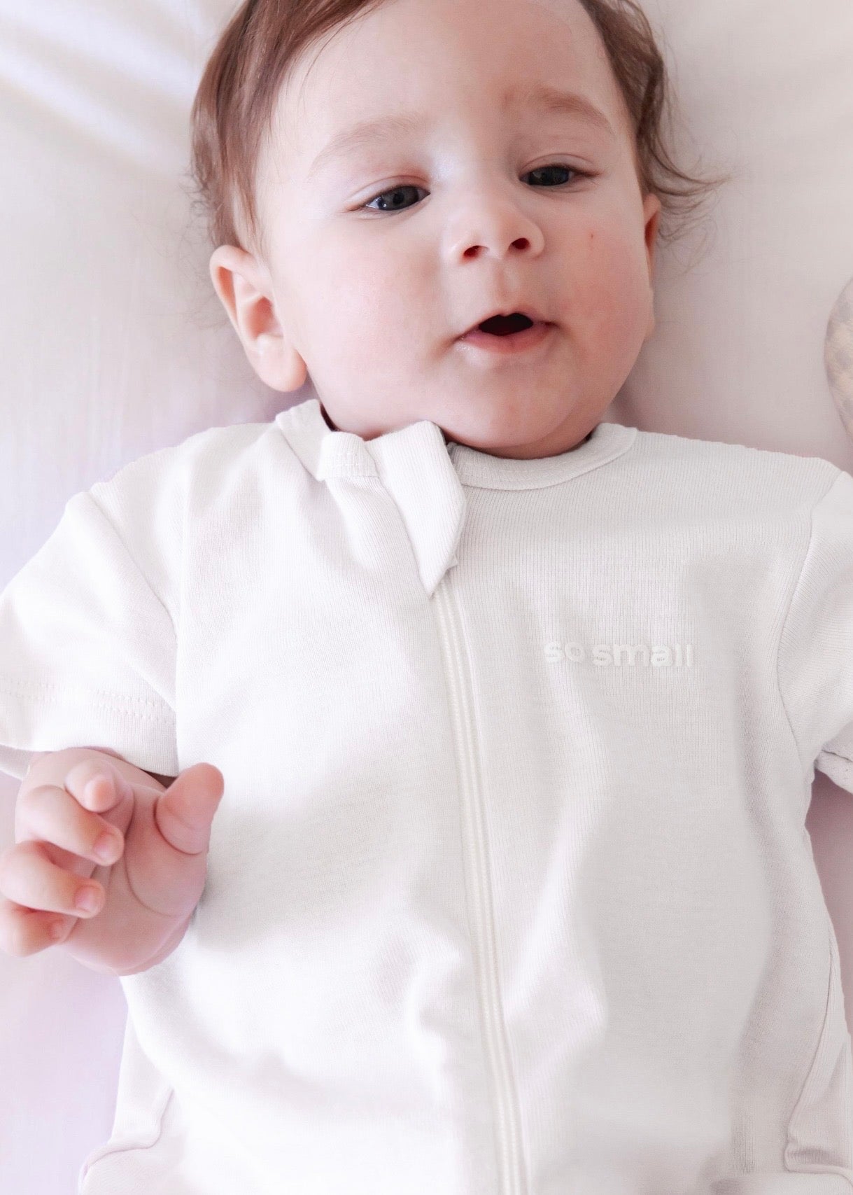 so small Organic Half-Sleeved Romper- Milky White