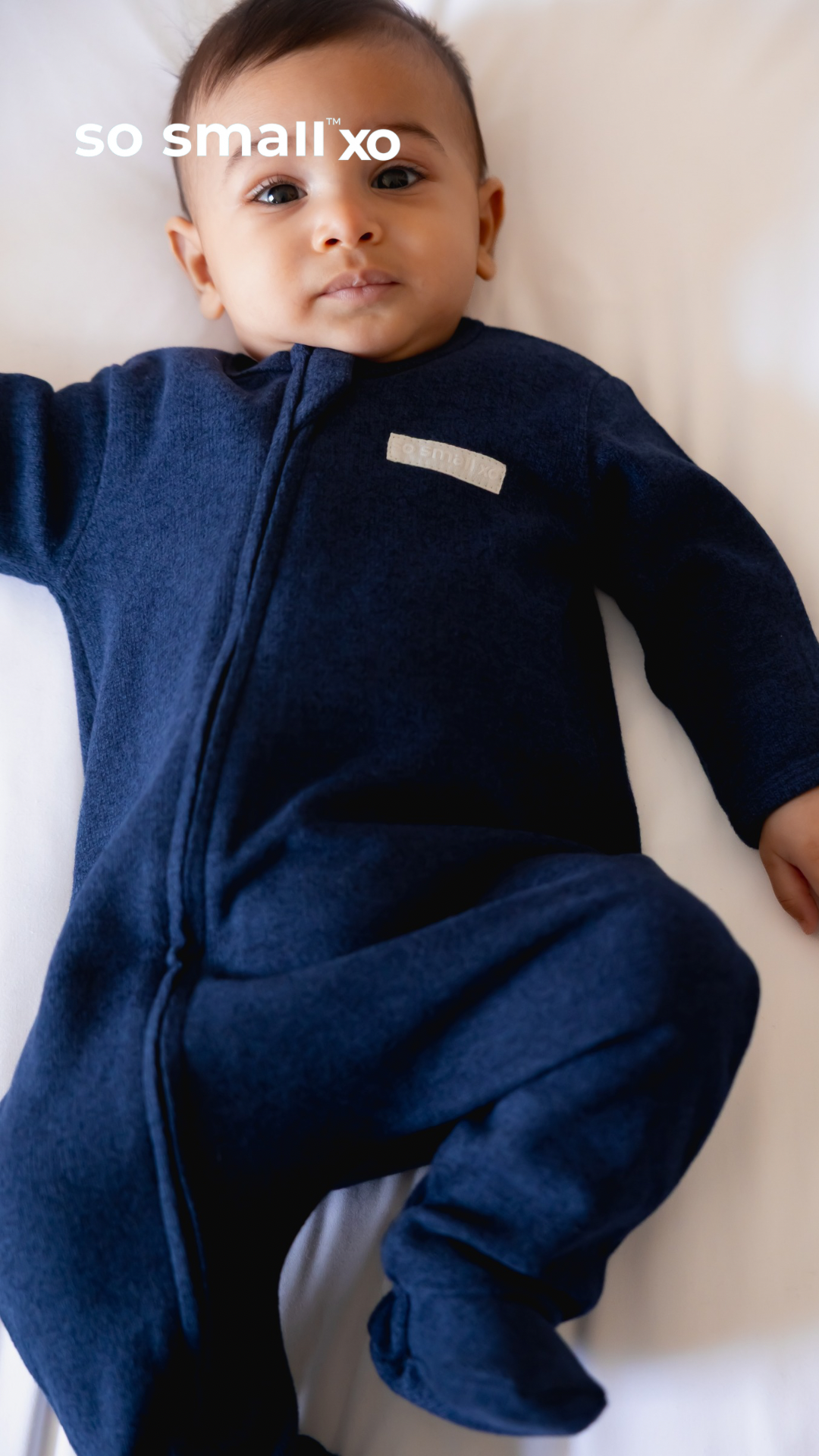so small xo Winter Limited Edition Cotton Cashmere-Like Zipper Footie- London Midnight